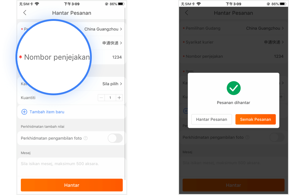 Upon successful check out, merchants will provide your parcel tracking no. Click on 'Submit Order'.